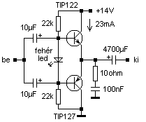Milyen viszonylag egyszerű kapcsolást javasoltok 12V-ra? A lényeg, hogy 2x 20W-os legyen, és lehetőleg tranzisztoros, ne IC-s. Egy régebbi autórádiót akarok kicsit feltuningolni. A lényeg, hogy a végfok IC bemeneteiről egy csatolókondin keresztül kivezetném a jelet, és ez jönne az erősítő bemenetére. Az erősítő két 4Ohm-os "Autóbox" hangdobozra dolgozna. Még egy kérdés: a Zsiguli áramellátása kibírná a megnövekedett terhelést?