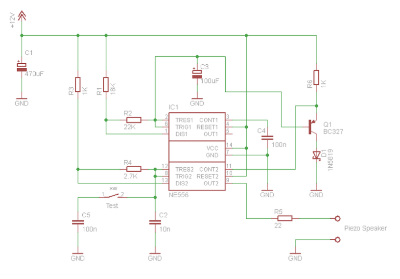 Adott a mellékletben szereplő program, szintén riasztóhoz. Az áramkör bekapcsolása után kb. 90 másodperccel borítékolhatóan kattan a piezo. Miért?