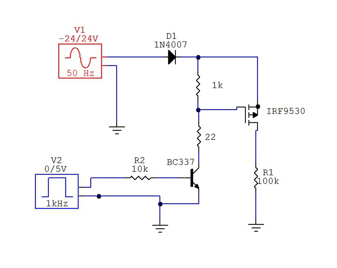 Csökkentsd a V1-et 15 V köré, mert valószínű, hogy a túl nagy gate-feszültség okozza a problémát. A hozzászólás módosítva: Feb 2, 2015