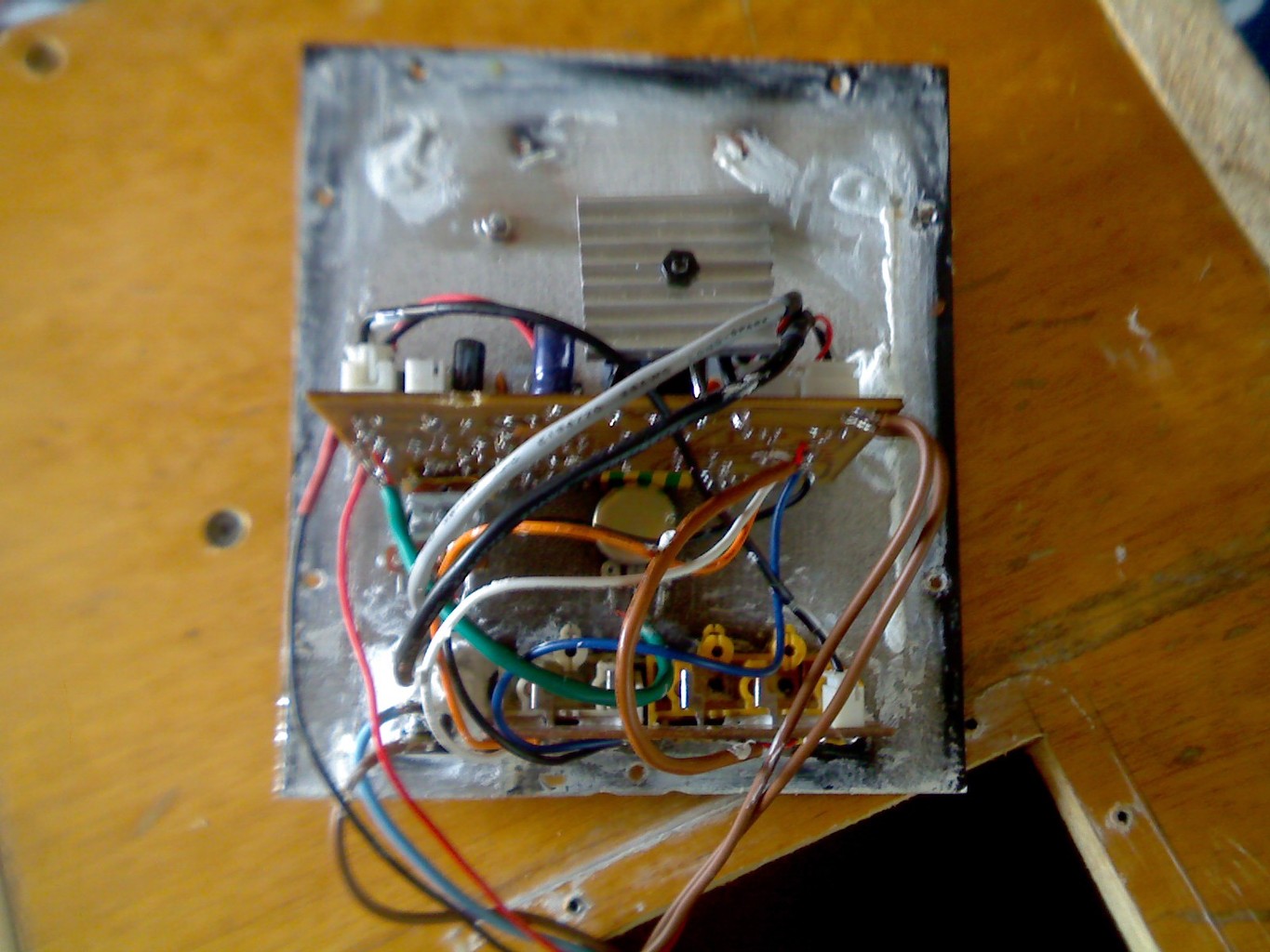 Üdv Reloop! Végre elkészült az erősítő. A kezdetben alkalmazott mélyhang kiemelőt használtam, végfokként UTC2003-mat hídban. Annyi volt csupán a baja hogy a potmétert a végfok elé kellett kötni, nem pedig a TL072 elé. Most remekül szól ezzel a dobozzal a 15cm-es hangszóró. Tettem fel néhány képet a végeredményről. A kezdetben használt rés kicsinek bizonyul, így az aljából vágtam ki egy darabot, most még a szoba is berezeg tőle.