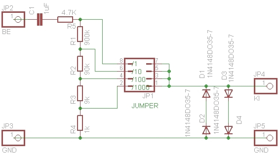 ![]() Bocsi! Megy a helyes rajz. Ezt a kapcsolást tényleg nem használtam gyengébb jelekre! Ezt a kapcsolást nem dugnám jobb hangkártyára. Marad a 20Khz. Így csak erős kompromisszumokkal lehet használni kapcsolást. 16V-os jelekre remélhetőleg jó lesz. A kondenzátor fesz tűrése nagyobb legyen, mint a mérendő fesz! Köszönöm a helyreigazítást!