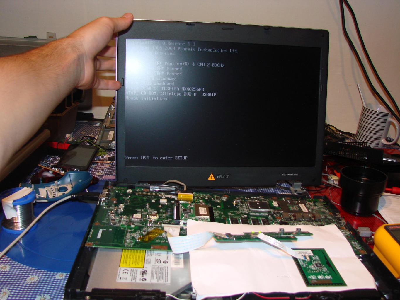 Most egy Acer TravelMate 2700 -es laptopot sikerült rábírni, hogy működjön már, mert eddig csak elindult majd kikapcsolt. Most ott tartok, hogy tökéletesen működik a rendszer, a touchpadot kivéve. A "vicces az egészben" az, hogy BIOS illetve az OS is látja, de a pointert valamiért nem hajlandó kezelni! -Jó minőségű, alacsony kapacitású vezetéket használtam a direkt bekötéshez- -A touchpad hibátlan, asztali gépemre rákötöttem ott tökéletesen vitt mindent. -Szalagkábelek csatlakozók hibái kizárva ( direktben bekötve az alaplapra) -EMI beszivárgás, nagyon minimálisra csökkentve ( árnyékoló fólia segítségével testpontra kötve) -Mintavételezési ráta ill. csomagméret lehető legminimálisabbra véve Jelenség: Semmi. Eddig egy egy alkalommal megmozdult (mikor direktben be volt kötve), közvetlenül bekapcsolás után üdvözlő gépernyő után pár másodpercg, aztán nem mozog tovább, de van, mikor ennyit sem tesz meg. Alaplapot nem nyomogattam és nem is terveztem. Szerintetek mi lehet a megoldás erre? Szerk.: BIOS hibája eredményezheti a touchpad működésképtelenségét? Köszönöm előre is a segítséget. A hozzászólás módosítva: Júl 6, 2013