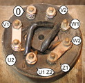 Sajnos nem tudok pontosítani. A betűjelzéseknek ott kellene lenniük a kapocslécen, a csavarok mellett. A bekötési rajzot a linkelt oldalon a "Motor bekötés.jpg"-ben megmutatják.