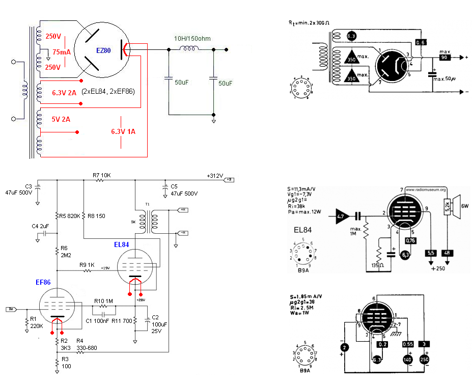 Itt a rajza ha érdekel: Bővebben: Link Többféle csövezéssel is készült eza gép egyébként, a Sima R646 az utóbbi általam említett csőkészlettel rendelkezik és AZ21es közvetlen fűtésű egyenirányítóval. Bővebben: Link