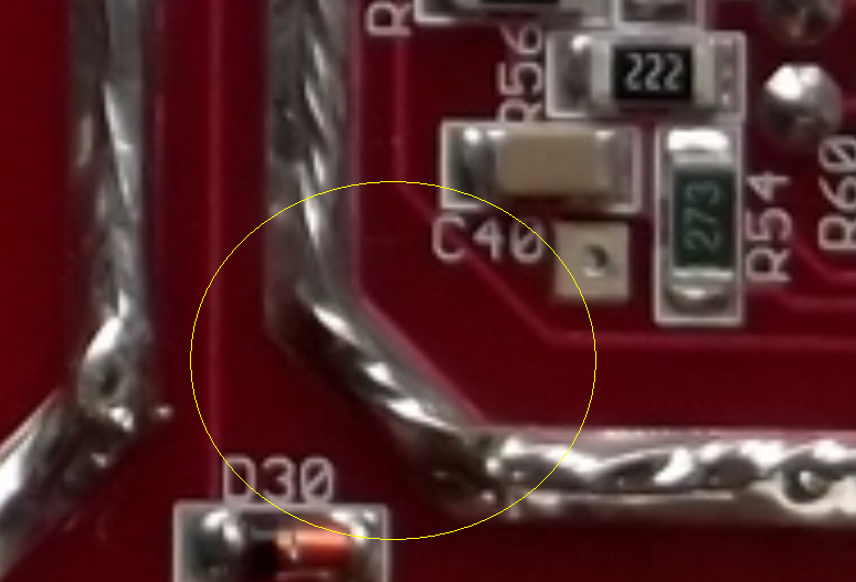 De miért hazudnék? Az összes nagyáramú vezetősáv szabadon van hagyva, nincs felettük forrasztásgátló (piros) lakk.