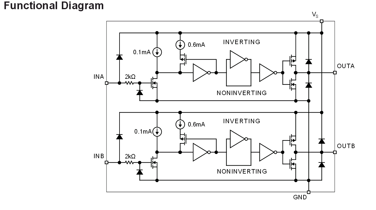 Ez a meghajtó kb. 2A-el tudja meghajtani (feltölteni, kisütni) a FET bemeneti kapacitását. Így az rövid idő alatt kapcsolgat ki/be, nem melegszik.