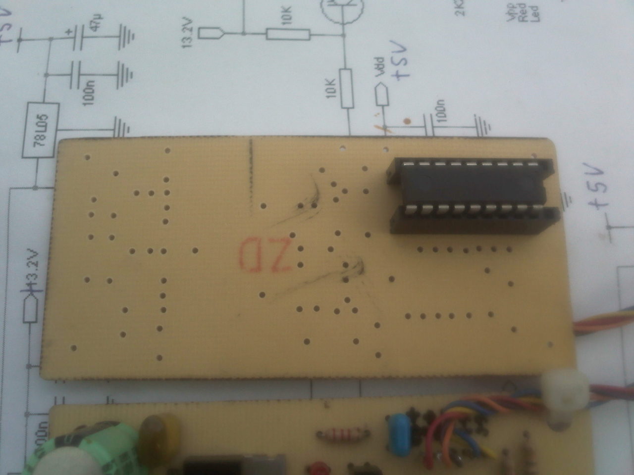 Sziasztok, meg építettem EZT a kapcsolást, de valamiért nem akarja fel programozni a PIC-et próbából egy PIC16F628A típusúval próbálkoztam, egy LED futófénynek a programját akartam bele égetni a PIC-be, és a program ki is írja hogy a be töltés sikerült, mikor meg ki próbálom nem működik, holott a WILLEM programozómmal ha ugyan ezt a programot be töltöm ugyan ebbe a PIC-be akkor a futófény működik!. A panelen a zöld led egyfolytában világit, ha meg le kapcsolom a soros portról a csatlakozót, akkor a piros led is világítani kezd, szerintetek hol van a hiba?. Van a rajzon egy pár jelzés amit nem értek, és jó volna ha valaki el magyarázná nekem hogy mit is jelentenek. A rajzon mit jelent az LVP jelzés azt hova kell kötni?, akkor ott vannak a Pin4(D2), Pin5(D3), Pin3(D1), Pin10(S6 vagy S8-nem tudom ki olvasni), Pin2(D0). A zárójelben lévő betűk és számok mit jelentenek?. A panelt muszáj volt kézzel meg rajzoljam, mert a lézer nyomtatom sajnos nem működik.