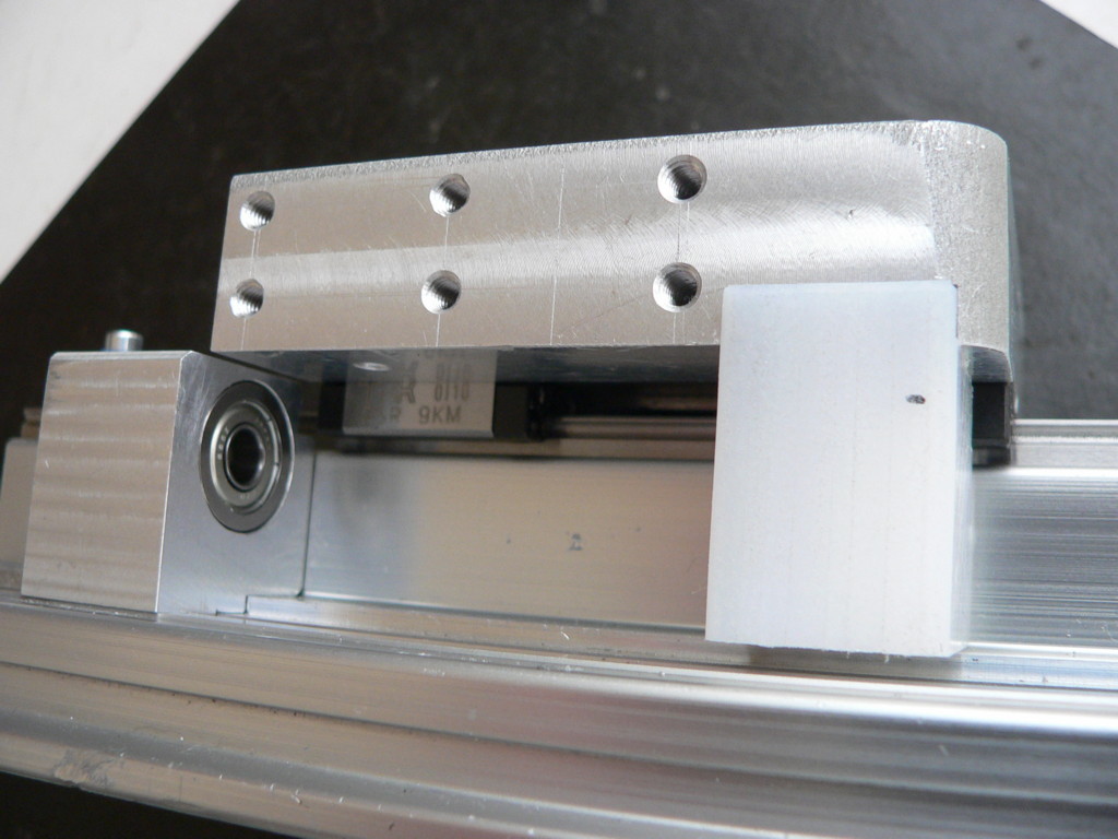 Az első próbálkozásaimnál 2x2 16-os tengelyen 8db SC16-os csapágy vitte az Y hidat. Már a próbák alatt elbukott! Rezonált és ha terheltem (kb. olyan súllyal mint a Z tengely és a szerelvényei) majdnem 1mm-t behajlott.
