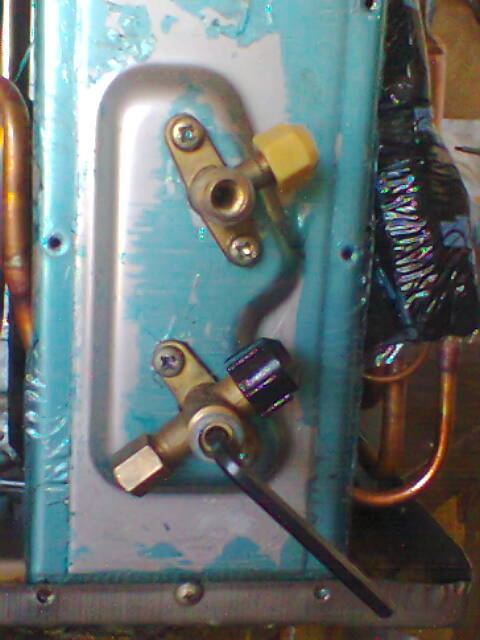 A csap a 90 fokos rézcső után egy duzzasztást kap az keményforrasztással kerül kötésbe a hűtőkörrel, de az már nincs a képen.