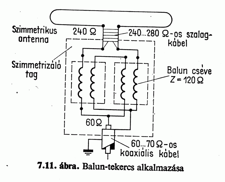 A bekötés jónak tűnik, különben sem az lehet a hiba, hiszen időszakosan az sem változik. Ha rosszul lenne bekötve, az máskor is okozna problémát. Viszont lehet a zavar bejutásának helye. Ez egy 240 (300) ohmos szimmetrikus tápvonalból készített 1:4 -es balun transzformátor.