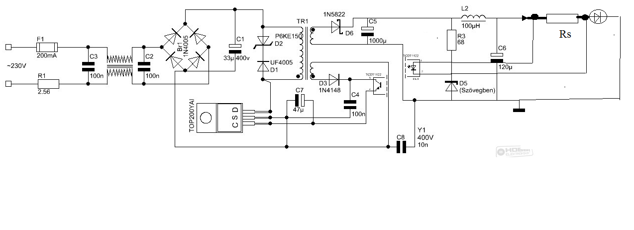 Idézet: „Azért, hogy a tápegység kis méretû lehessen felületszerelt (SMD) ellenállásokat használtam, és ezek feszültségtûrése csak 200V, ugyan ez elvileg effektív érték, de a biztonság kedvéért inkább 2db soros ellenállást használtam, mert így semmiképpen sem alakulhat ki 200V-nál nagyobb feszültség rajtuk.” Mivel ő is 0805 méretet használt az elkészült tápjában, hittem neki. De ha durrog is, legfeljebb a primer oldalon pusztít. Mindenesetre köszönöm a tájékoztatást, később hasznos lehet.