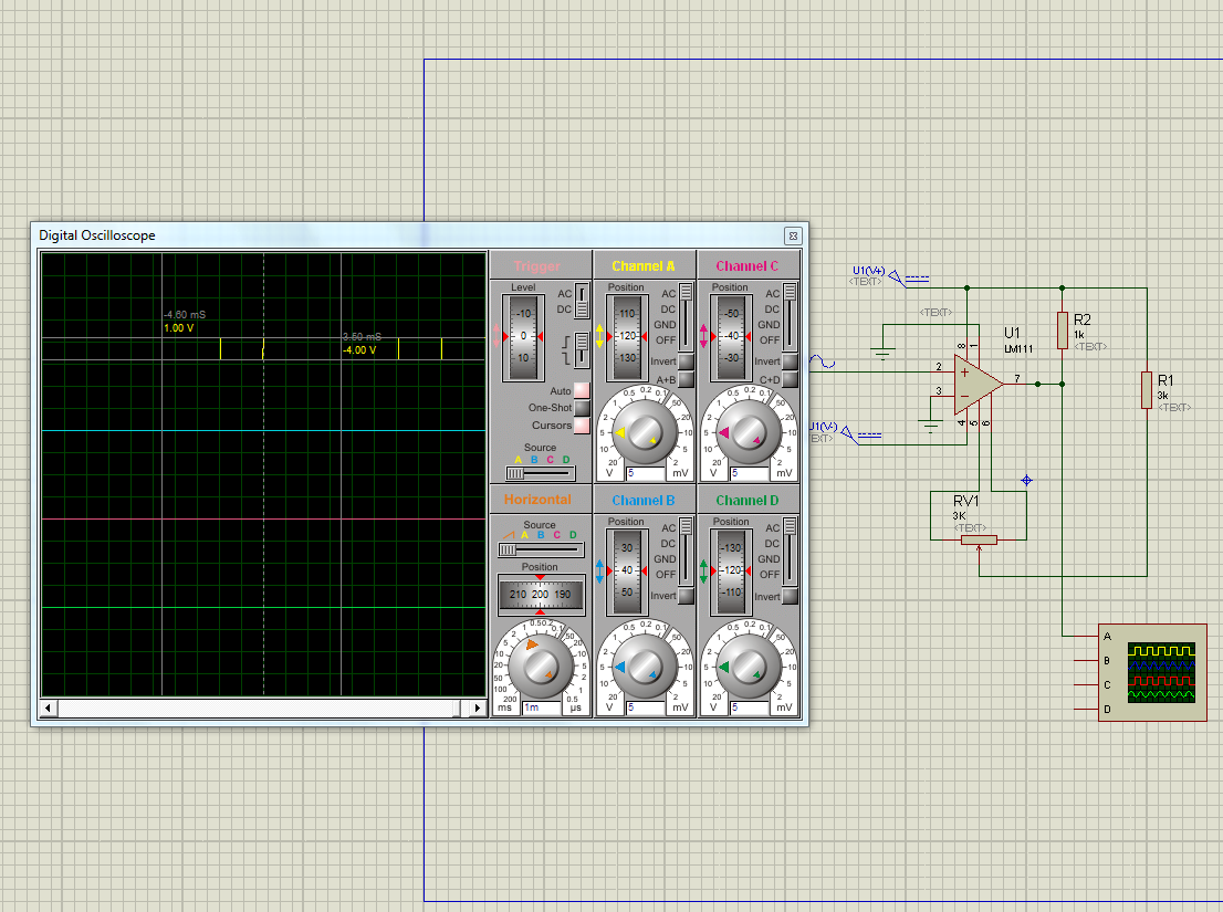 Proteusban lemodelleztem az áramkört a következő paraméterekkel: