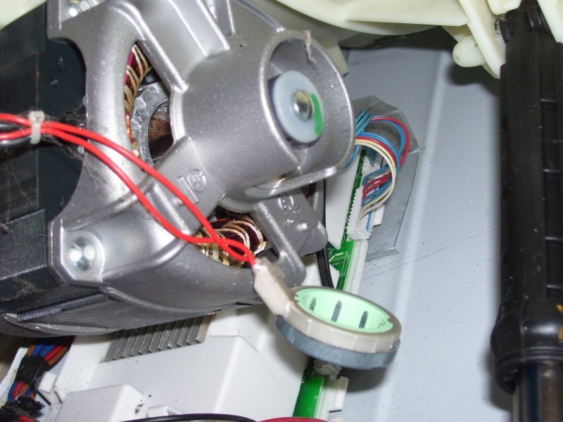 Fölborítottam a gépet, úgy nézem, hogy ez kefe nélküli motor. Az a lehúzott valami egy forgásérzékelő ? A motor egyébként nem szorul, szaga nincs. Most nem tudom, hogy hogyan tovább ...