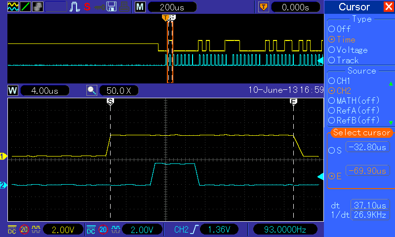 de látható hogy jó a ketyere mivel az fel/le futó élek miatt van kb időbeni külömbség.