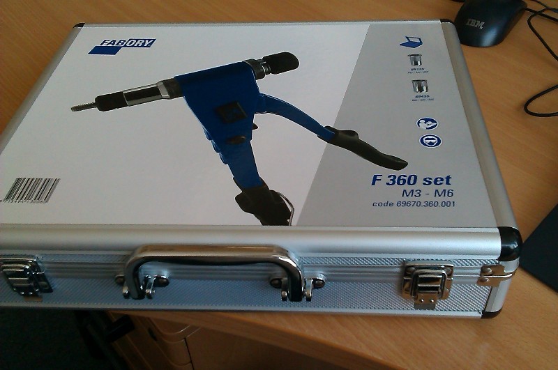 Íme a műhely legújabb tagja, egy szegecsanya behúzó, ami reményeim szerint a készülékek dobozolásában fog nagy seítségemre lenni. Aki nem ismerné a szerkezetet, annak dióhéjban: Lemezekbe, vékony falú zártszelvényekbe lehet ezzel normál metrikus menetet varázsolni, egy popszegecshúzóhoz hasonlóan. Gyakorlatilag olyan, mintha a lemez túloldalára hegesztenél egy anyát, csak itt a szegecselés elvén rögzíti, és nem kell a túloldalhoz hozzáférni, tehát egy 6 méteres zártszevény közepébe, vagy egy belülről hozzáférhetetlen üregbe is bele lehet akár nyomni. A működési elvéről itt egy link, a szerkezetről meg csatoltam 2 fotót. Adtak hozzá 120 db különféle méretű szegecsanyát is indulásnak, meg 4 méretű anyabehúzó tüskét, és 3 féle szegecscsavar behúzót is. ![]() Bővebben: Link A hozzászólás módosítva: Aug 1, 2013