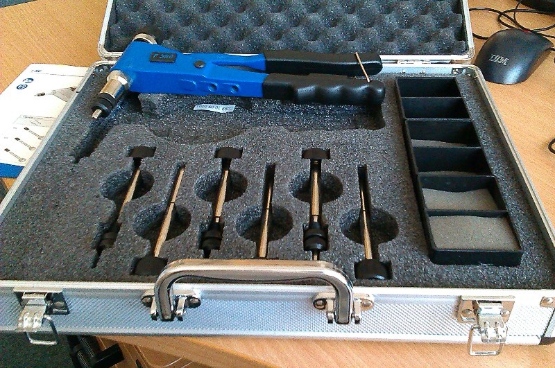 Adtak hozzá 120 db különféle méretű szegecsanyát is indulásnak, meg 4 méretű anyabehúzó tüskét, és 3 féle szegecscsavar behúzót is.