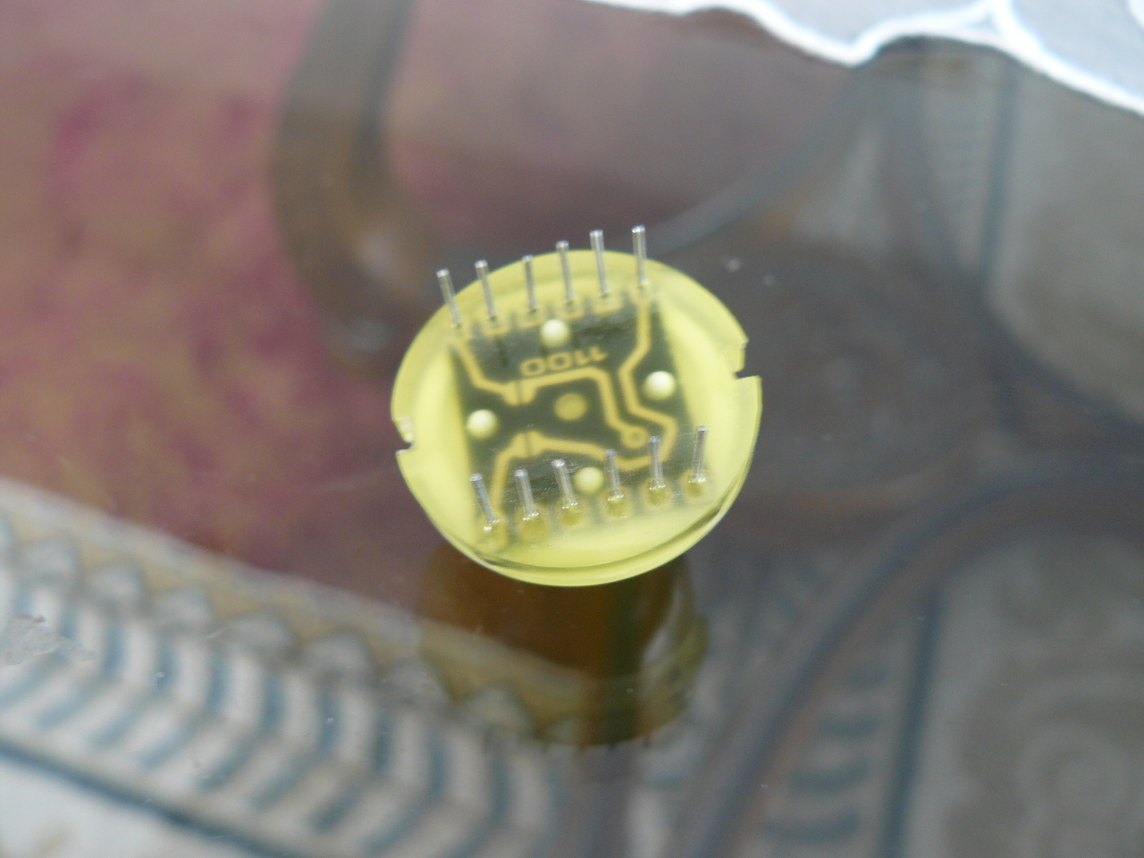 Erről a "bigyóról" szeretnék megtudni valami közelebbit. Csomagban kaptam, egy csomó egyéb alkatrész társaságában, de ezt nem ismertem fel. Valamiféle LED-nek nézem, de miért van 12 lába? Nincs rajta semmi felirat, csak az alján a panelra van írva, hogy "1100"... A gúglit már feltúrtam, LED modulokra keresve, de semmi... Van a csomagban egy reflektor tükör is, nem tudom, hogy ehhez való-e, de a közepén pont akkora lyuk van, amibe ez simán belemegy... Kösz: Tibor
