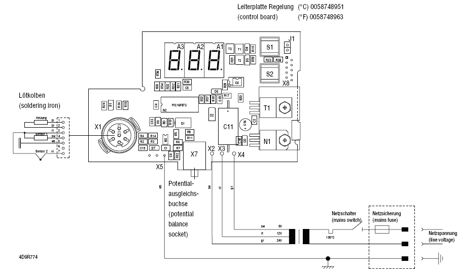 Bekötés fűtés 2x ,ESD sztatikus föld , thermoelem 2x