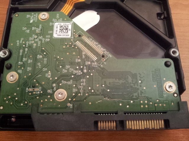 A minap kezembe került egy WD 3.0TB Green (WD30EZRX) típusú HDD. Azt mondták róla, hogy külső vinyó ként volt használva, míg nem egyszer egy dokumentumot meg nem nyitottak róla, majd a rendszer lefagyott. Egyből winfos install majd a vinyót semmi sem ismerte fel. Miután jobban szemügyre vettem, a nyáklapon az egyik rézszál el volt pattanva.