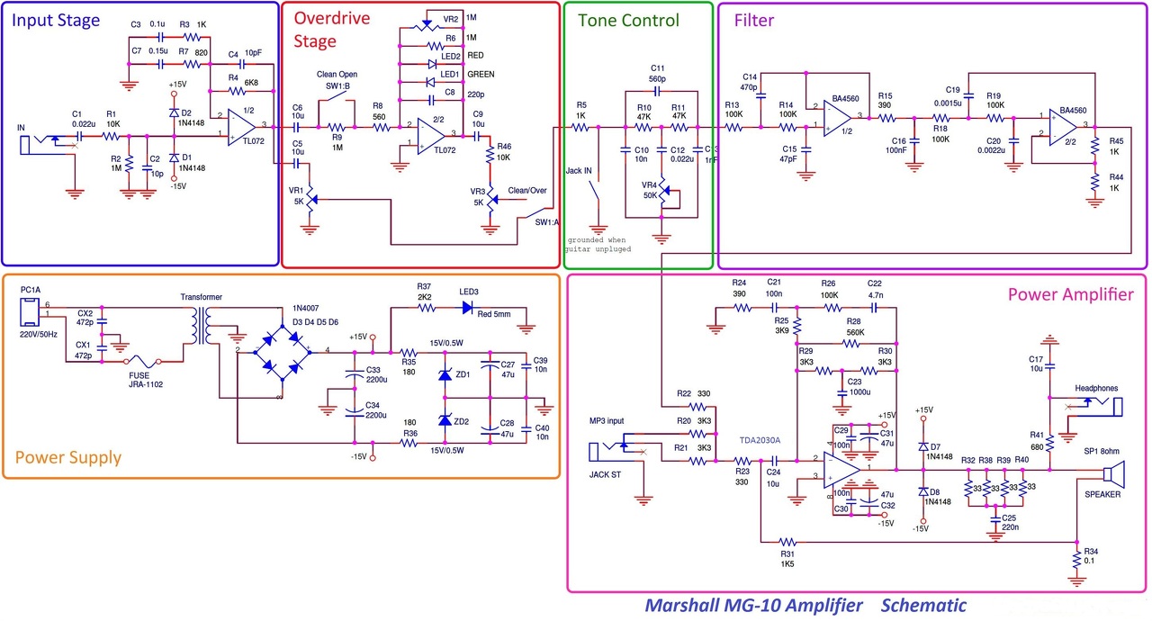 Ne ítélj elsőre a hangszínszabályozó felől. Ez gyakorlatilag csak mosolyogni tud. A potival tudo állítani mennyire legyen "kaján" a mosoly. Gyakolratilag a közepet húzkodja le, ha jól emlékszem tanulmányaimra ezt hívják áthidalt T szűrőnek. A potival soros 22nF elhangolásával lehet lejjebb feljebb vinni a közép frekvenciát, ahol szabályozni szeretnél. Nekem épp ezért nem tetszik, nem szeretem kivágni a közepet, épp ellenkezőleg, szerintem egy dögös hanghoz épp tolni kell a közepet, de ez ízlés függő persze. Itt hallhatod akcióban a dolgot. Zs.