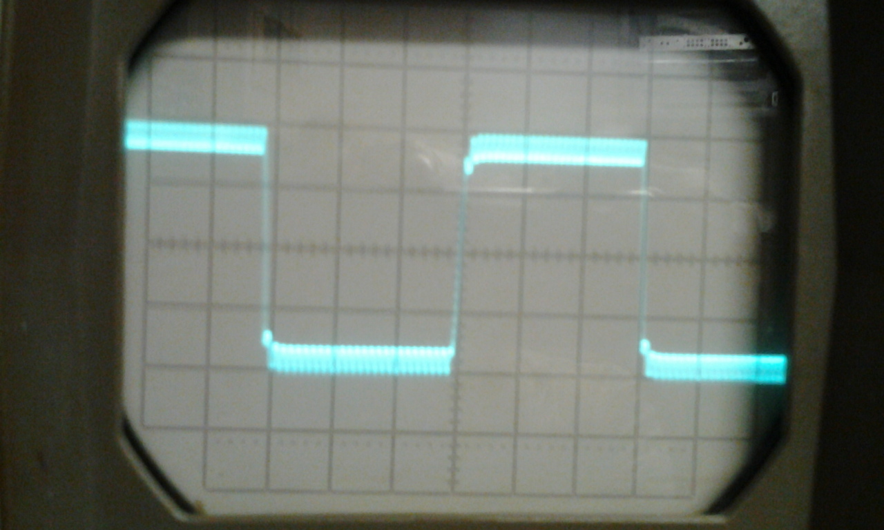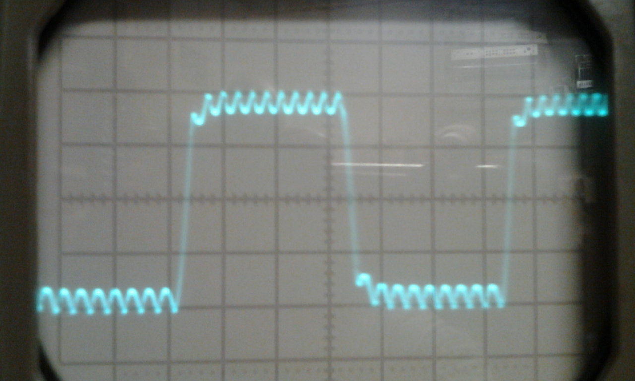 Nem a táp "horpad be". Akkor klippelne. Így néz ki egy négyszögjel, ha felüláteresztőn engedik át. (Pötyögj be egy differenciáló RC tagot a szimulátorba.)