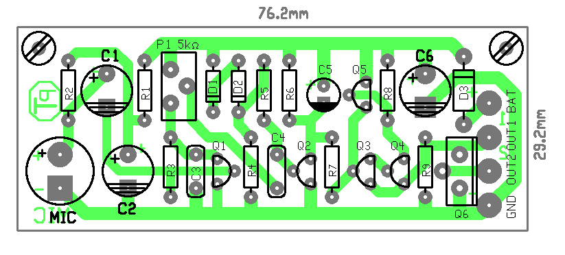 . Rákötöttem hangszóróra (erősítőmön nincs line kimenet nem is baj) Az érzékenységét, hogy tudnám állítani? Nem akarok bele kontárkodni a munkádba, de ez érdekelne, arra gondoltam hogy az R6 és R7 ellenállás közé trimmert teszek és az megy a komparátorra.