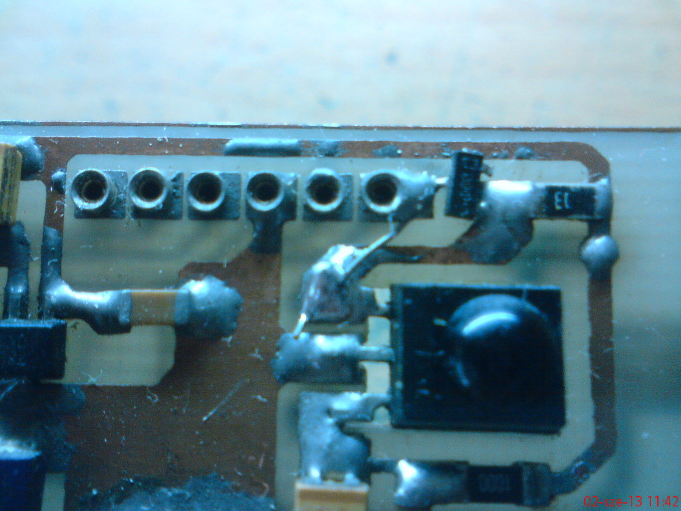 Köszönöm a gyors választ.Végignéztem az alkatrészeket ahogy ajánlottad.És valóban hibás alkatrész volt a tettes.A C6-os 100nf-os kerámia kondi besípolt.Eddig csak a led-eket ellenöriztem le beépítés előtt,mert volt már hogy 10-ből kettő rossz volt.Ezután a kondikat is kisípoltatom mert most ez két elemet tett tönkre.