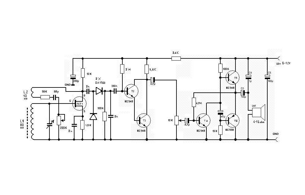 Hivatalosan nem szokás összekötni egymással a dual Gate MOS-FET G lábait, de én így szoktam csinálni, ha csak ilyen van, és J-FET helyére rakom. Kipróbáltam már úgy is, mint az adatlapon van, a G2-nek csinálok egy ellenállás osztót, alapvetően alig van észrevehető különbség a kettő között, de ha én ilyet itt leírok, egyesek ezért megköveznének. Ezért is van a rajzomon csak 3 lábú FET. Az orosz FET-nek csak 1 gat-je volt, és nem MOS, de helyére mást nem találtam. Jó oda a BF244, 245, 246 is. A baj az, hogy mindegyiknek más a lábkiosztása. Én sem tudom, hog mi ezek közt az alapvető különbség, a lábkiosztáson túl, nem elég annyi, hogy be tudom kötni úgy, hogy működjön? Azért felhívom a figyelmet arra, hogy a demodulátor átalakítása után a rádió csendben gerjed. Ez attól van, hogy a FET-ről már nem jöhet le hangfreki. Állomás mellé kell tekerni, ahhoz hogy hallható legyen a sípolás, de a vétel szépen hangosodik, amikor ráadom, utána átfordul halkulásba. A pozitív visszacsatoláson lehet még talán finomítani, a végfok helyére lehet teni akármilyen IC-s végfokot, Most írjam le azt is, olyanoknak ajánlom a rádió utánépítését, akik az alapokkal legalább tisztában vannak, nem abszolút kezdők, és szeretnek kísérletezgetni? Először tanácsos a FET Source ellenállás helyére egy trimmer potenciométert tenni, és azzal lehet beállítani az eltérő típusok munkapontjához a kapcsolást. Ha jól működik, ki lehet váltani azt egy fix értékű ellenállásra. A darlington sem kötelező. A detektorosnak nálam ez volt a hang végfoka, azért maradt ott. Kár arra is a szót vesztegetni. Egyedül a FET-es rész benne a lényeg, azt írtam le, azzal olyan hangos ferrit antennával, mint anélkül magas antennával, és földdel a detektoros. Utána ki-ki a hangfrekvenciát azzal erősíti, amit a legjobban szeret. A FET nem nagyon hajlandó audionként működni, ahhoz valószínűleg túl nagy vezérlőjel kellene neki, ha az előfeszültséggel annyira lezáratjuk, viszont itt a kapcsolás, amilyen beállításban a leggyakrabban alkalmazzák nagyfrekvenciás előerősítőként. A rádiónak akármilyen kis teljesítményű nagyfrekvenciás FET-tel működnie kell. Egyedül az IRF sorozatú nagy teljesítmény FEt-ekkel nem, azok nem arra készültek. A kicsik közül akármelyiket próbáltam, szól velük, és nem veszek észre egyáltalán nagyobb különbséget köztük. Ha a roncsokból kibányászott akármelyik jó oda, akkor nem tudom, miért ne működne egy, a boltban vett vadonatúj BF 245-tel?