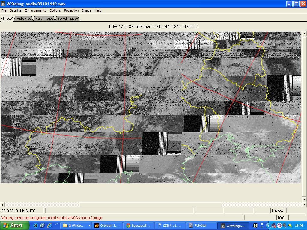 Eljutottam odáig, hogy a WXtoimg fog valamit, de elcsúszik sajnos. Ez is eredmény, mert eddig még ennyi szinkron sem volt. Sajnos a progi azt hiszi, hogy noaa 17, pedig 18, de nem ez a fő probléma.