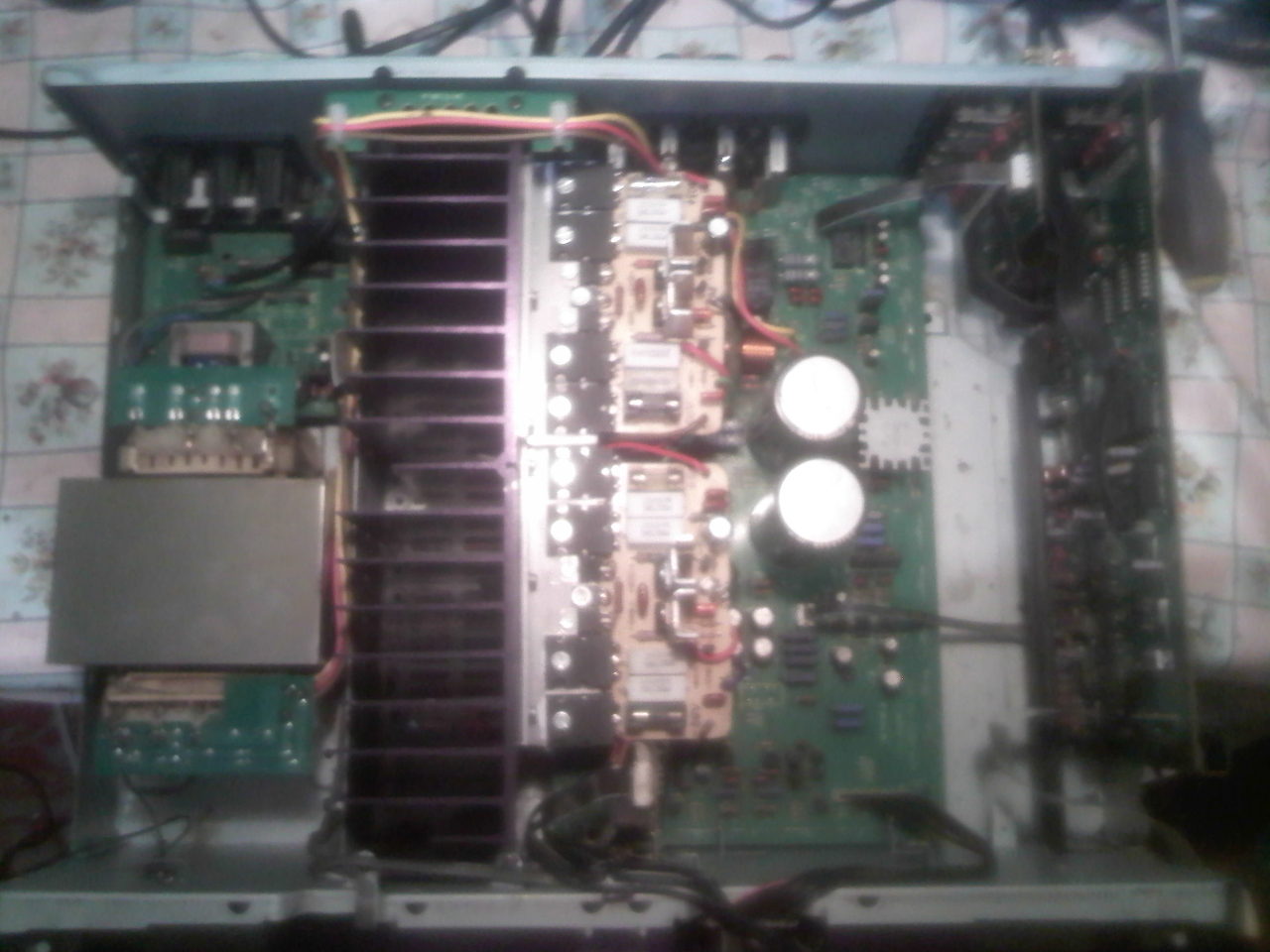 Sziasztok!, ma végre készen lettem a KENWOOD KA 5050R-tipusu erősítő átalakításával, azért alakítottam át mert nagyon drága lett volna a finál tranzisztorok újonnan meg vásárolni, és így az mellet döntöttem hogy kap egy olcsóbb végfokot, és megyen eladásra. Most a végfokok amit bele építettem az két darab 200W/4ohm-os panel, egész jól viselkedik a végfok a KENWOOD belsejében, igaz kellet némi átalakítás a végfok élőfok-kán, mert túl érzékeny volt a bemenetele, de meg oldottam, már csak egy kis brumm halható még a hangsugárzókban, de majd valahogy ki küszöbölöm. Ami viszont elég érdekes dolog a számomra az az hogy ha a hangerő potenciométert minimumon, és maximumra ki tekerem, csak akkor hallatszik a bugás, de ha közép állásban van a potenciométer, teljesen el tűnik a bugás a hangsugárzókból!.