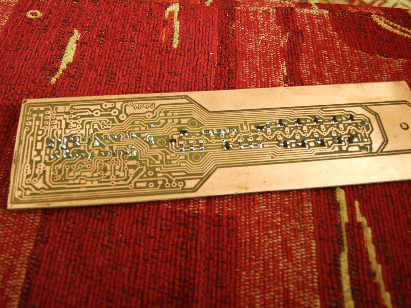 Fotó eljárás vasalás mindennek megvan a maga előnye és hátránya. Teljesen mindegy mivel csinálod a panelt a két oldalt hogyan igazítod egymáshoz ez a nehéz feladat amit mindkét módszerrel nagyon el lehet baltázni és a fúrás az sem egyszerű. Nekem nem mindegy mennyi vegyszert használok és menyi időt fordítok rá. Egy panel elkészítése nekem nem tart 10 percig a nyomtatással együtt neked menyi idő? Jobb a panelod mit az enyém?