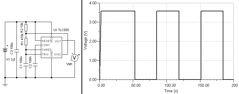 Hello! Nem írtad, mekkora a terhelőáram. De ha kisebb mint 100mA, akkor egy TLC555-öt célszerű alkalmazni erre a feladatra. Amennyiben az működési és szünet idő egyaránt 30 másodperc. Az ábrán láthatod, hogy tápfeszültség bekapcsolásakor az első működési ütem, majd kétszer hosszabb, de utána már egyenletes a két idő. Ha ez gond, lehet ellene tenni. Ha pontosan szeretnéd, hogy a két idő egyforma legyen, vagy az idő a félpercnél hosszabb, akkor számláló IC-t célszerű használni. üdv!