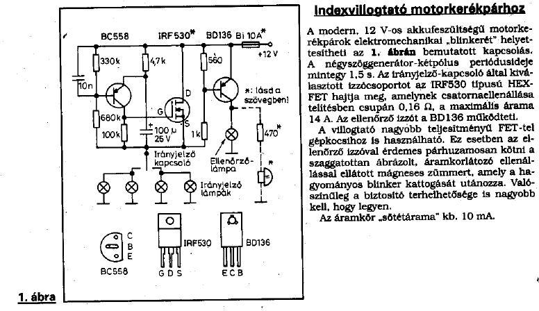 A kapunyitómat kiegészítettem egy villogó sárga lámpával,mely a motorokkal együtt üzemel,onnan kapja a tápot és az egyik kapuoszlop tetején helyeztem el.A lámpa villogtatásáról a mellékelt kapcsolás gondoskodik.A kapcsolásból kihagytam a visszajelző áramkör elemeit mert feleslegesek.Az áramkör kb. 24V DC-ről üzemel kifogástalanul.Egyébként ezt az áramkört használom a kis traktorom irányjelzőjéhez is 12V-ról,minden változtatás nélkül.A kapcsolás megtalálható egyéb fórumokon is itt a HE. oldalán.Esetleges után építésre,használatra javasolni tudom,ha valakit érdekel.