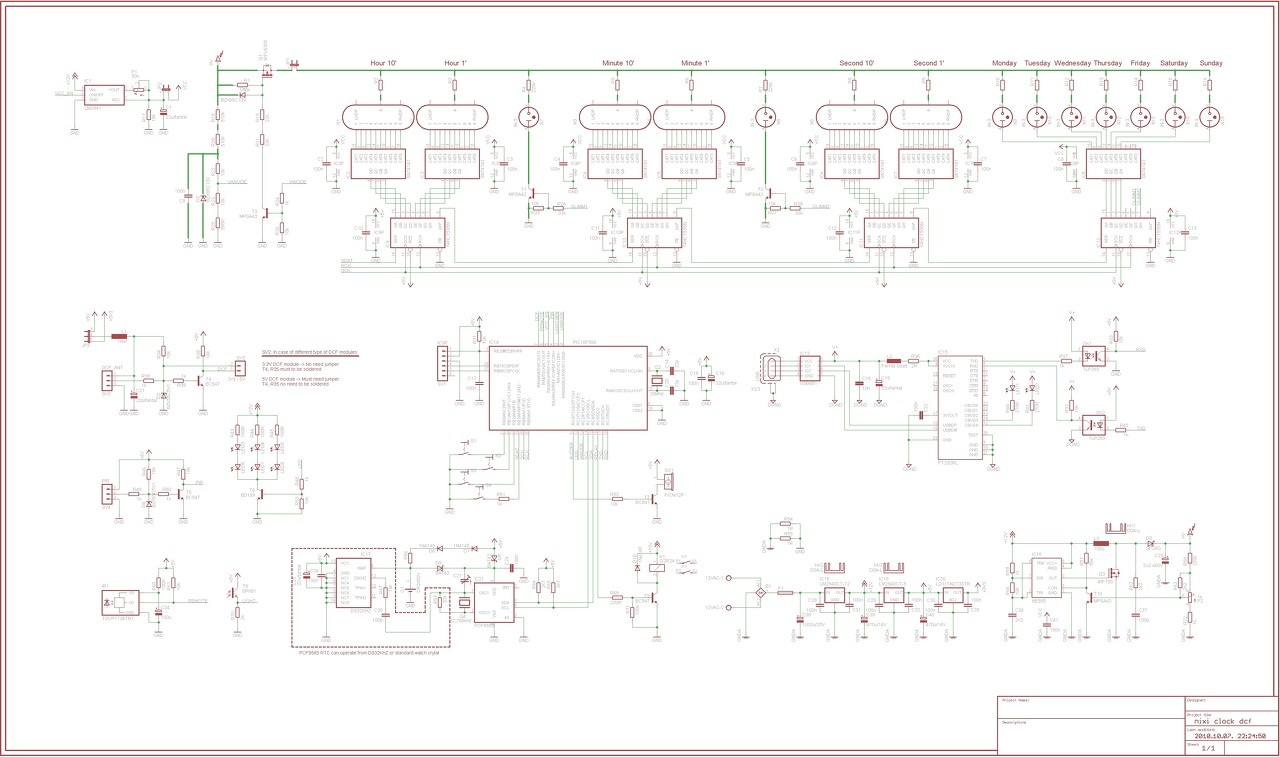Itt egyébként kb. 2.5 éve elkeztünk közösen fejleszteni egy nagy tudású multiplex nélküli órát, kifejezetten a nagy csövek meghajtására (IN-18, Z568M stb.). A tudása: multiplex nélküli meghajtás, PWM-es fényerőszabályzás akár automatikusan a külső fényviszonyokat figyelve, villogó elválasztó pontok, hét napjainak kijelzése (glimmekkel, vagy akár egy hetedik csővel), infra távirányítás, mozgásérzékelés, USB-s adatátvitel és szinkronizálás PC-s programmal, DCF77, LED-es alávilágítás, rengeteg ébresztési időpont beállítás, ugyanez relé meghúzással (bármi kapcsolható vele), akár DS32KHZ-el meghajtott pontosság lítiumelemes tartalékkal áramszünet esetére (ha valaki mondjuk nem akar DCF-et), kijelző lekapcsolás esetén takarékos üzemmód, stb... minden most nem jut azonnal eszembe, de a nagyja itt van. Mivel időben nagyon szét vannak szórva a legfrissebb adatok a topicban és amúgyis már kérés is volt korábban, egy helyen itt van most minden ezzel az órával kapcsolatban. Többen dolgoztunk rajta egy időben, észrevételekkel segítve egymást, így mindenkit nem tudok megemlíteni sajnos. De röviden: a kapcsolási rajzokat Hp41C-nek és MolnarG-nek köszönhetjük, a szoftver mestere Hp41C, a nyáktervet én követtem el, sokan mások hasznos ötletekkel és tanácsokkal szolgáltak. Prototípusként már működött az asztalomon, tesztelés alatt, a szoftvert próbálgattuk. Sajnos nálam akkori költözés és most időhiány miatt csak várja sorát. De remélem valamikor folytatni tudom, mert a végeredmény megérné a fáradozást. Ha valakinek van ideje, kedve foglalkozni vele, a fájlok alapján nekikezdhet, hiba nincs a nyákon a jelenlegi állás szerint. A nyák csak az alaplap, a kijelzőrész a 74141 vagy 4028 meghajtókkal külön tervezendő, szintén az univerzálisság miatt. A saját csöveimhez valót feltöltöm.