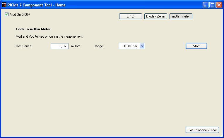 Sajnos van egy rossz hírem: Mivel a PICkit2 PGD és PGC vezetékei 4k7 ellenállással a földre vannak húzva, az AUX pedig nem használható analóg funkcióra, a mOhm mérő csak a módosított kapcsolású (2.50) PICKit2 -vel működik csak.