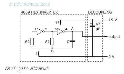 Lehet esetleg baj egy olyan órajel-generátorral, amilyet mellékelek? R1=50 kohm R2=500 kohm C=1 uF 74HC00 NAND kapukat használok inverterként.