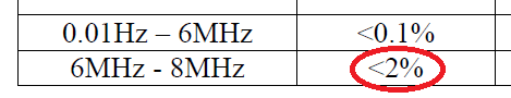 Ebben a doksiban 6-8MHz közé 2%-ot mond, de a zip-ben levő doksiban még 1% szerepel; illetve 6MHz alatt 0.1%, szóval nem konzekvensen mondja.