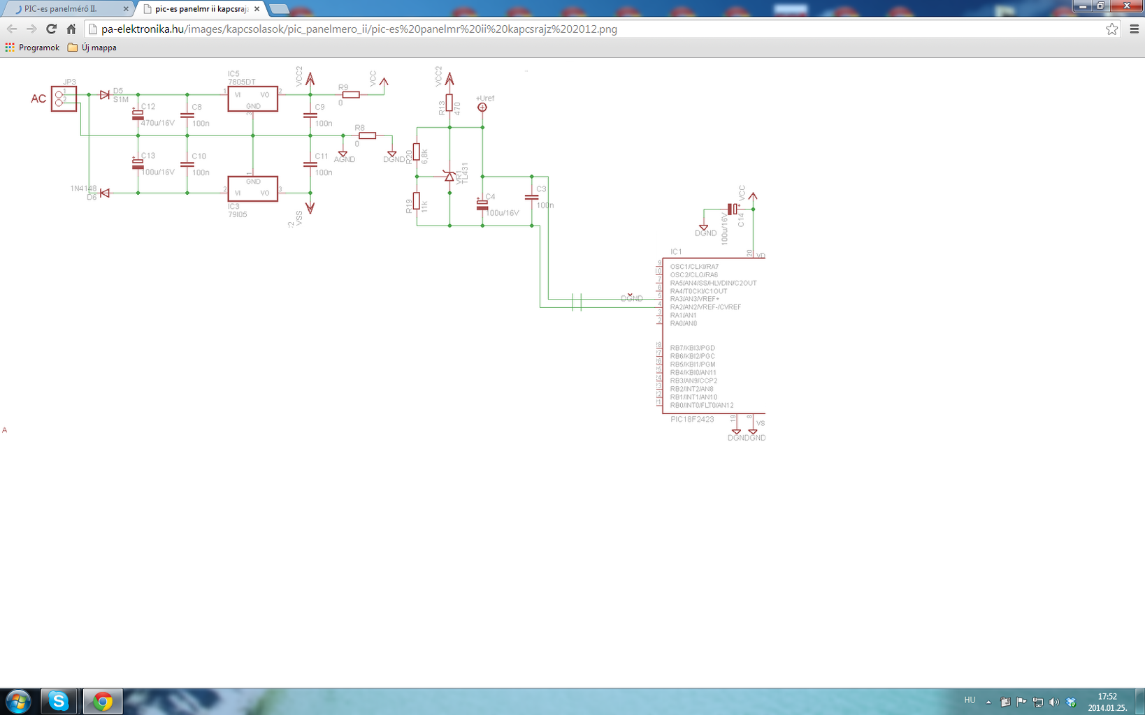 Szia, azt hiszem ez a te panelmérődnek a külső referencia feszültség bemenetének a kapcsolása. Az lenne a kérdésem hogy én is most egy feszültségmérőt csinálok amihez külső ref.-et használnék csak a konfig bitek beállítása van hátra. (18f4550) Itt lenne a kód, ha jó a gondolatmenetem mind két bitet 1-esbe kellene állítanom az adatlap szerint és a te kapcsolásod ráültetve a tl-el pontosan is mérne. Mert így ref. nélkül sajnos elmászik.
