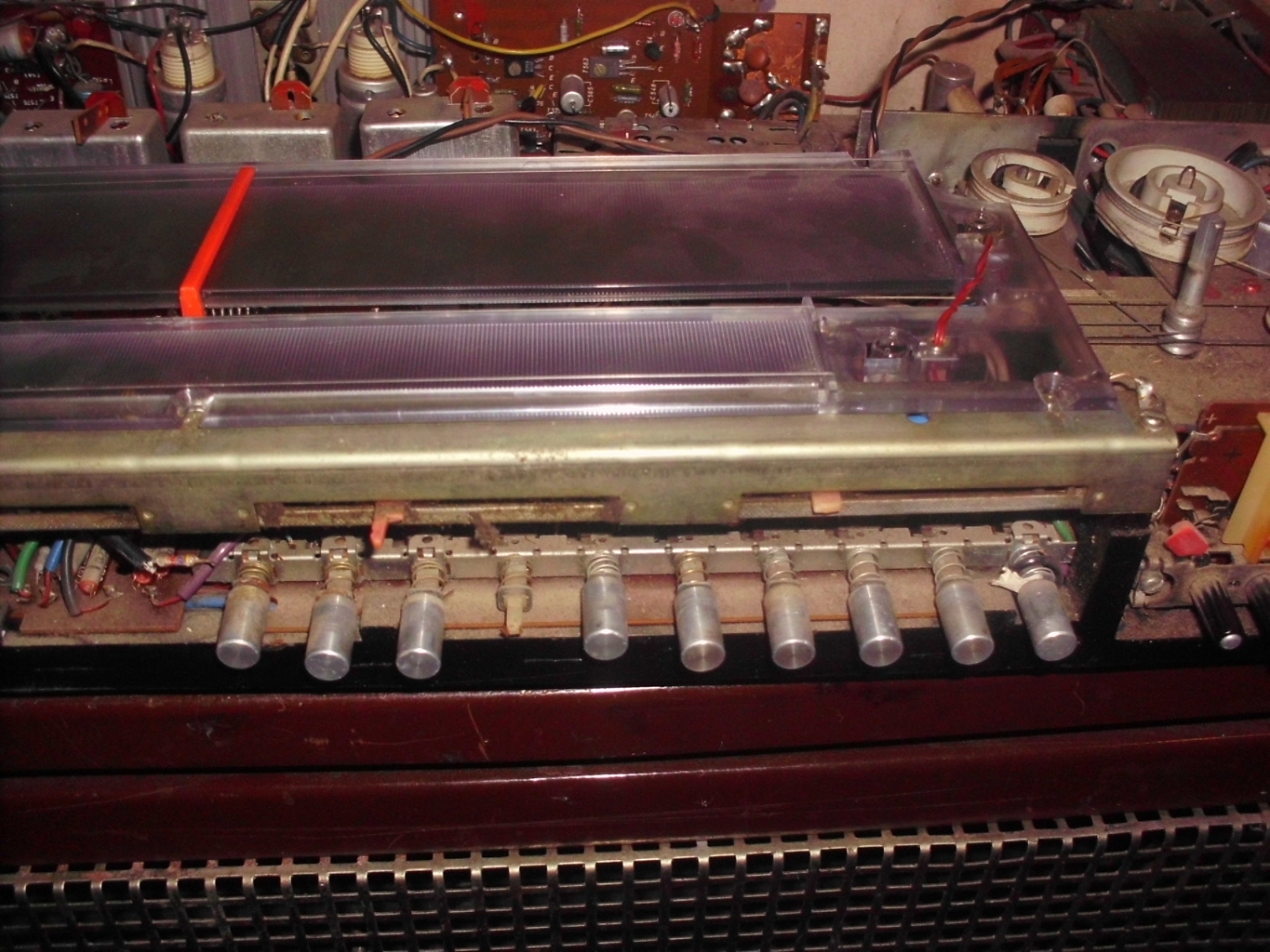 Arról szeretném a véleményeteket kikérni, hogy szerintetek miként érdemes a skálaüveg mögötti fényterelőt megújítani? Készítsek egyet sima fehér lapból, zsírpapírból, pauszpapírból, dipából. Esetleg szerezzek rizspapírt vagy papíruszt? Hajlok afelé, hogy a hátsó részét dipából vágnám ki (a tartó pálcák közötti méretben) az elejét pedig egy kissé bővebbre szabott pauszpapírból készíteném el. A ragasztón még gondolkodom ( tapétaragasztó, bordür ragasztó vagy kétoldalas ragasztó szalag ez hőálló is). Vagy utolsó lehetőségként hagyjam a csudába és maximum egy kevés oldószeres vattával törölgessem át eltüntetve a skálamutató koszolását?