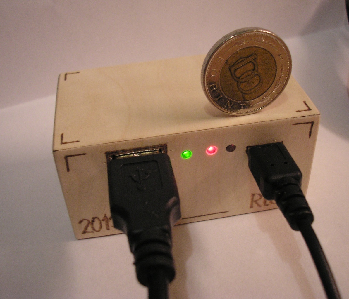 Belül 2db Lithium Ion cella pihen, és egy kis nyáklemez. 5V és 1A-t tud a normál USB bemeneten, a micro USB-n lehet tölteni. Mindenféle védelemmel ellátott. A fa égetést most próbáltam először, azért lett ilyen