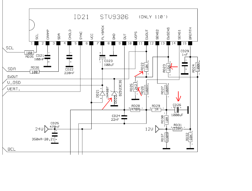 Irtad , hogy kicserélted az stv9306 os ic. Nem tudom , hogy kimérted e a körülötte lévő alkatrészek főleg , amiket megnyilaztam azok értékei lennének fontosak.És ha valamelyik nem fedi a valóságok pl RD22, RD25 értéke nem annyi , hanem eltérést mérsz ,akkor azokat cserélni kell. Az ic megkapja e rendesen azokat a tápfeszültségeket , amik meg vannak jelölve. Ha minden rendben lesz , akkor az a sejtésem , hogy a TDA 1771 ről érkező Vert sync jel, ami az stv9306 5 ös lábára megy túl vezérli az stv9306 os ic -t , és lehet , hogy a EW körben nincs is hiba , hanem a vertikális jel sok .Ez esetben a TDA1771 es ic környékét , és magát az ic - t is ellenőrizni kellene az adatlap szerinti adatok alapján. Szűkül a kör most már. A hozzászólás módosítva: Okt 4, 2013