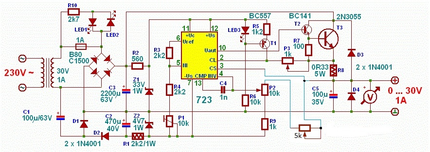 Építettem egy tápegységet próbapanelen. Minden teljesen jó benne, viszont szeretném egy picit kibővíteni, mégpedig egy finomszabályozó feszültség potencióméterrel. A mellékelt rajzban jelöltem is egy 5kOhm-os alkatrész bekötését, kérdésem, hogy így hosszútávon is működőképes-e, mert kipróbáltam így és úgy működik, ahogy szeretném. Másik kérdésem pedig az lenne, hogy hogyan lehetne megoldani, hogy az áramlimit átlépését egy LED jelezze? Az áramkorlátot a P3-mal lehet állítani.