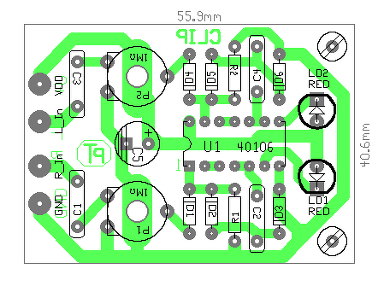 Találtam egy nagyon szuper Clip jelzőt!1 Mohmos bemenete van a QUAD műveleti kimenetére simán ráköthető(én egy 10kohmos ellenállással vettem le a jelet az ic-ről!Oszcilloszkóppal iszonyat precízen be lehet állítani 4-8 ohmos 400wattos műterheléssel próbáltam amint amint laposodik a jel már jelez is és nem csak parázslik meg pár ezred másodpercre világit!Egy ic elég két csatornára az 5volt táp egyszerüen megoldható(csak kéne valakinek egy jó nyákot tervezni hozzá)!Az elektoros PA300 clip kimenetére is bekötöttem hibátlanul müködik!Mindenkinek ajánlom!