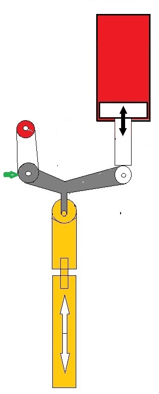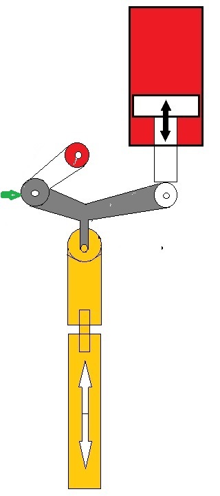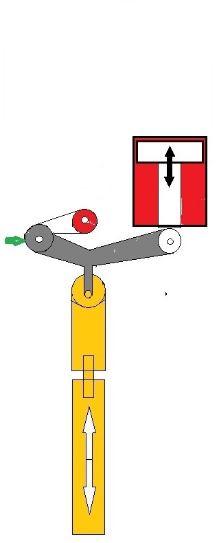 Gondoltam teszek fel inkább még rajzokat, hátha érthetőbb lesz a kérdés. A valóságban természetesen nem a pirossal kitöltött csuklópont mozog, hanem a munkahenger mozdul el kissé, ugyanis az is csuklóponttal van rögzítve.