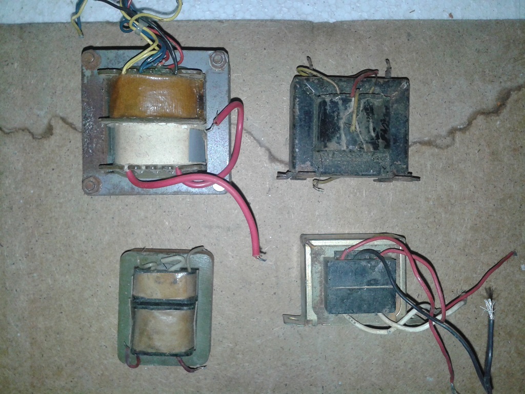 A "6V-os trafók képei 1-2. Ezek orion TV-ben fellelhető hangkimenő transzformátorok. A célnak megfelelnek. A 12V-os trafó (ami 12,6V) az pedig az imént emlegetett "képkimenő trafó" ,amely a PCL85-re illesztett az eredeti helyén és hangkimenőnek elég rossz. Valami 1:12.. vagy 1:15-ös illesztés. Próbáltam.. rosszul szól. A másik orosz hiperszil trafó szintén egy képkimenő trafó vastagabb szekunder 11,6V, míg a vékonyka huzal 34,5V Nem próbáltam kimenőnek, de azt mondták hogy nem jó. A "6V" os trafók kellenek neked.