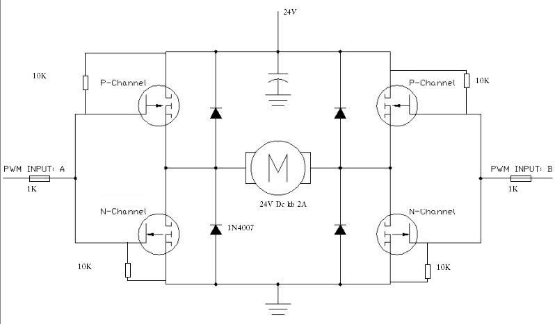 Ez az egyik oldalon +12V-ot ad ki (+24V), a másikon szaggat PWM-mel (nem fékez). Megépíthető, csak a vezérlése nem triviális, ezért kértem, hogy írj bővebben.