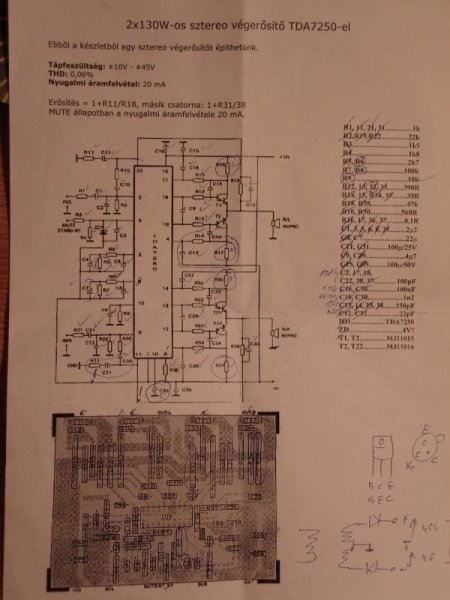 Veszek ellenállásokat, mert nincs otthon ilyen teljesítményben, és kipróbálom. Az IC-t "mute-oltam" de a nyugalmi mit se változott.