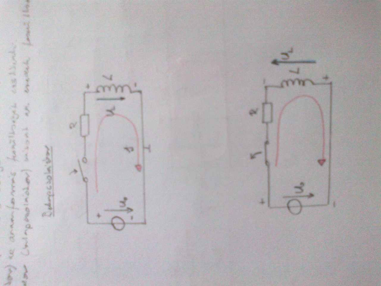 Még egy apró dolog. Akkor mind be és kikapcsoláskor a tekercsen (a tranziens lezajlása után) az áram és feszültség azonos irányba mutat.