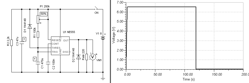Hello! Most Be vagy KI? Mert mire megrajzoltam úgy látom megváltozott.. Egyébként meg mindegy, mert ha a relét nem a kimenet és a GND közé, hanem a kimenet és a tápfesz közé teszed, akkor BE fog kapcsolni a beállított idő után. Amúgy a 200sec már kissé necces az 555-nek. 1 perc felett, már számláló alkalmazása célszerűbb.. üdv!