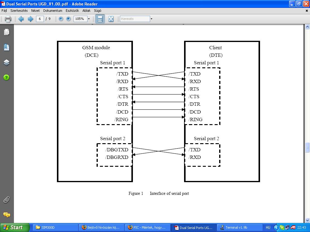 Összeraktam a MAX232 val az illesztőt a PC és a GSM modul közé. Küldeném a modul felé az AT parancsokat de nem jön vissza semmi a modul felől. Hogyan lehet leellenőrizni hogy egyáltalán létrejött e a kapcsolat? A te Terminal programodat használom. A COM 1 en van a modul a MAX 232 keresztül.
